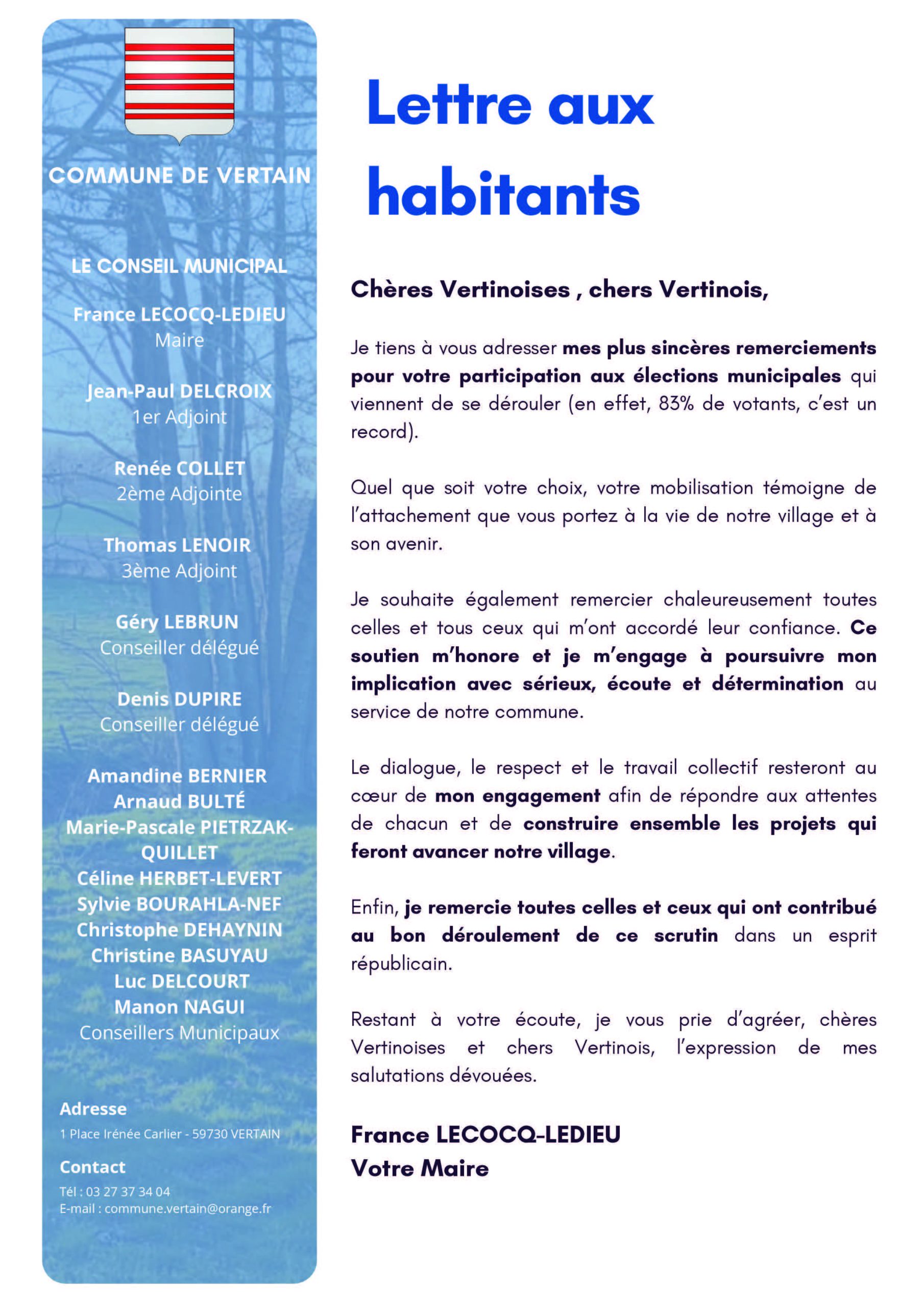 La commune de Vertain sera concernée par l’épandage. Le Conseil Municipal de Vertain après avoir